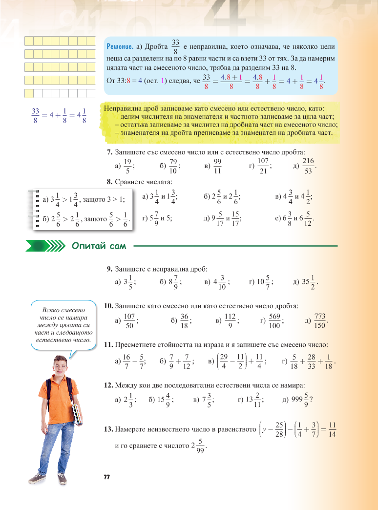 Пресметнете стойността на израза и я запишете със смесено число: