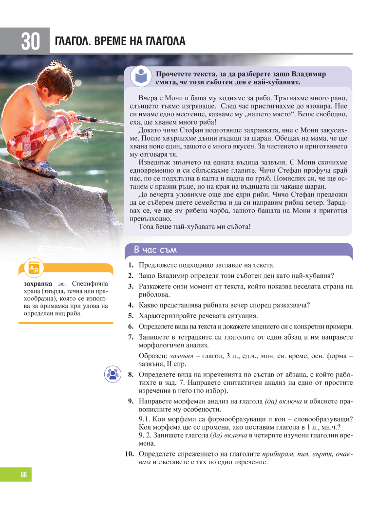 Запишете в тетрадките си глаголите от един абзац и им направете